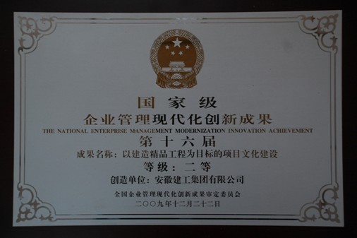 安徽建工集團喜獲第十六屆國家級企業(yè)管理現代化創(chuàng )新成果二等獎