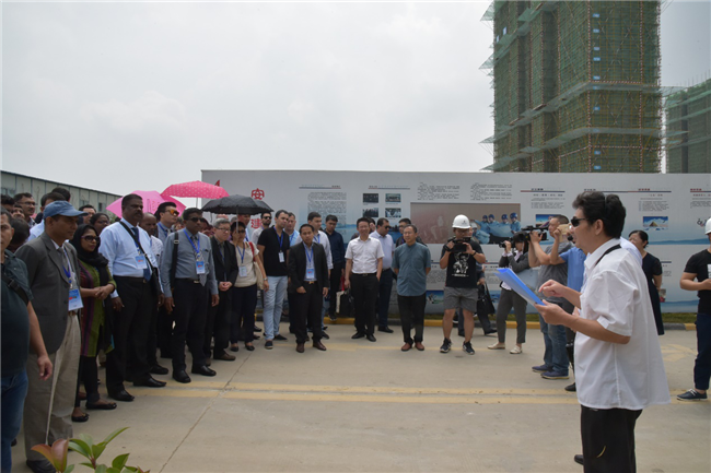 On the morning of July 2, ninety-four officials from 12 Asian countries - Afghanistan, Azerbaijan, Bangladesh, Cambodia, Indonesia, Laos, Malaysia, Myanmar, Pakistan, Palestine, Sri Lanka and Uzbekistan, visited ACEG construction project sites. They are the participants of the Seminar of Belt and Road Construction Cooperation between China and Asian Countries, 2018 - a grand event organized by Chinese Ministry of Commerce, and it was also attended by officials of Chinese Ministry of Commerce, Anhui Provincial Department of Commerce and Mrs. Xing Yingmei, Party Secretary and Deputy G.M., Mr. Xie Yuli, Deputy G.M. of ACEG Overseas Co., Ltd .