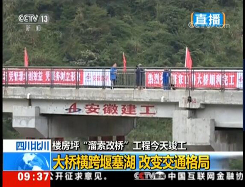 China Central Television broadcast the bridge over Tangjiashan Quake Lake newly built by ACEG