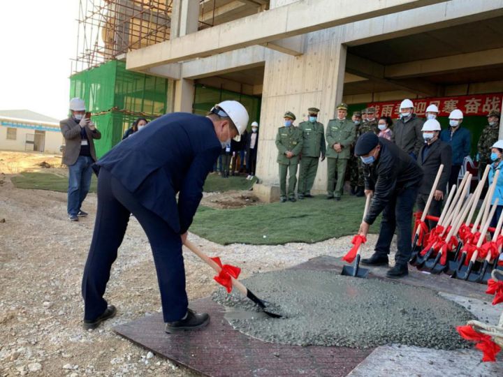 December 28, 2020 / Algiers, Algeria / ACEG Algerian Branch officially held a grand ceremony for the main structures completion of Project Military Academy of Algiers. Director of the Infrastructure Bureau of the Military Academy; Deputy Director of the Infrastructure Bureau of the Military Academy; The General Manager of ACEG Algerian Branch and all the employees of the project, both Chinese and local, have witnessed this great moment.