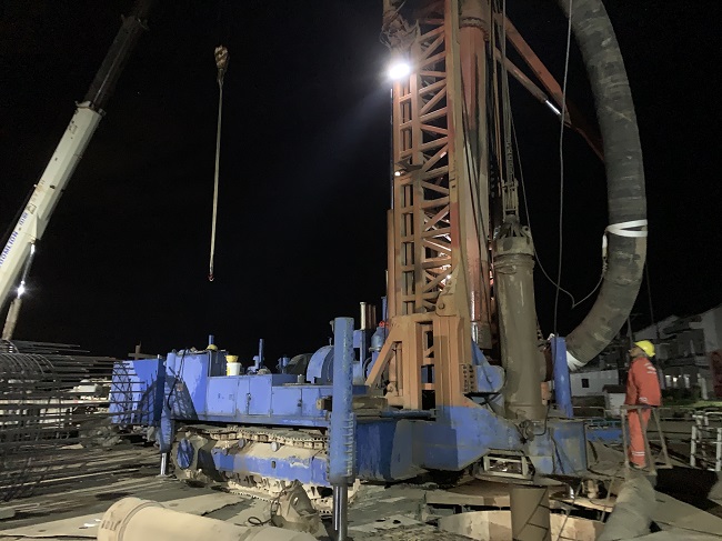 The company’s 2.5m diameter borehole and concrete filling techniques have successfully overcome the problems for the project under the complex geological conditions, as large diameter pile drilled with a small drill, shaft wall protection by drilling mud, drilling in an iron grit layer and nuisanceless disposal of the drilling mud, which have the advantages of fast speed, high efficiency and high qualities.