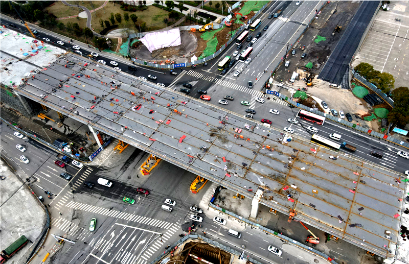 ACEG R&B / The closure of steel box girders of the super overpass on Jinzhai Road turned out a great success