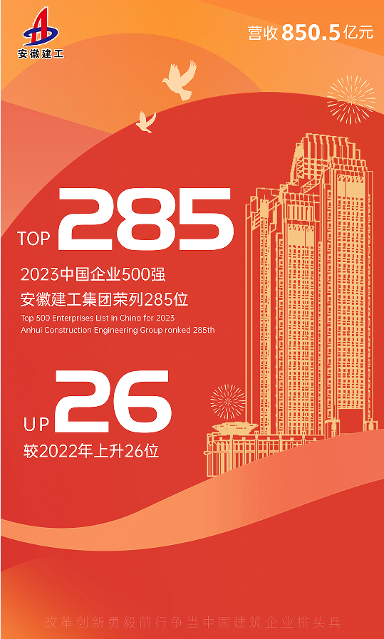 September 20 - China Enterprise Confederation and China Enterprise Entrepreneurs Association jointly released the 2023 List of China's Top 500 Enterprises. ACEG ranked the 285th with its operating revenue of RMB85.05 Billion, up 26 positions compared with last year.